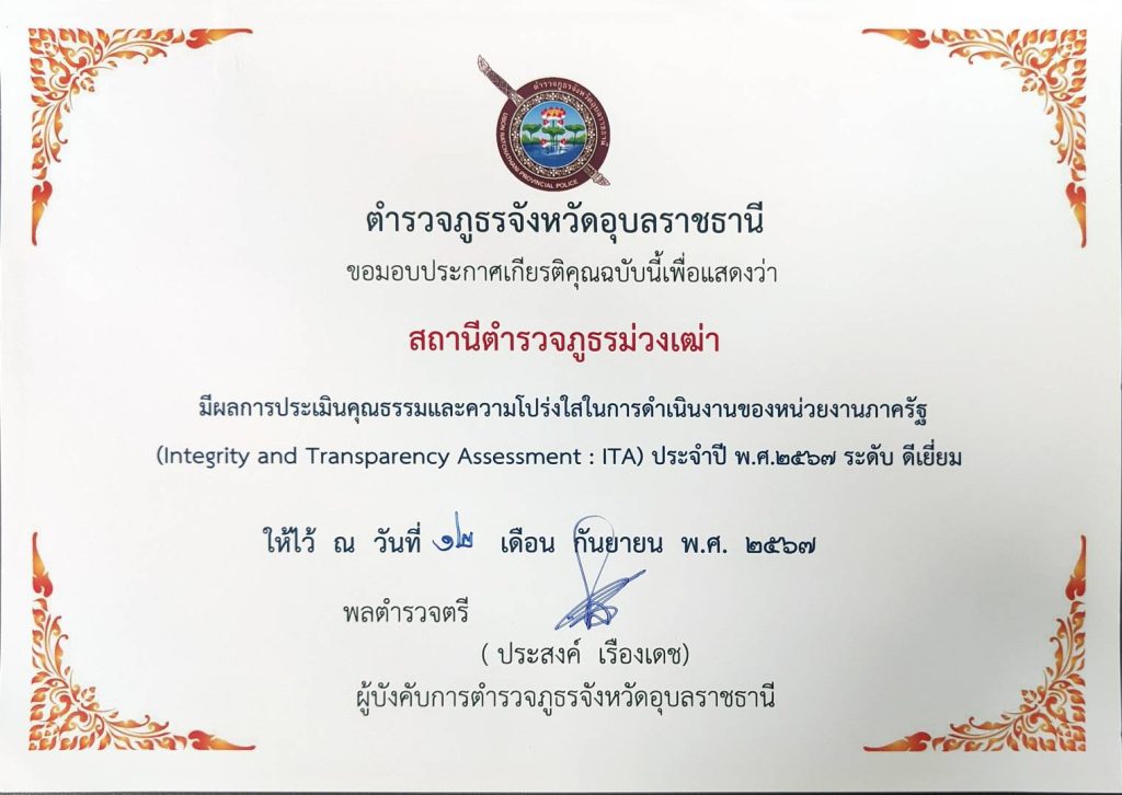 วันที่ ( 26 พ.ย. 67 ) เวลา 09.00 น. พ.ต.อ.ธนชัย แก้วเสนา ผกก.(สอบสวน) ภ.จว.อุบลราชธานี รรท.ผกก.สภ.ม่