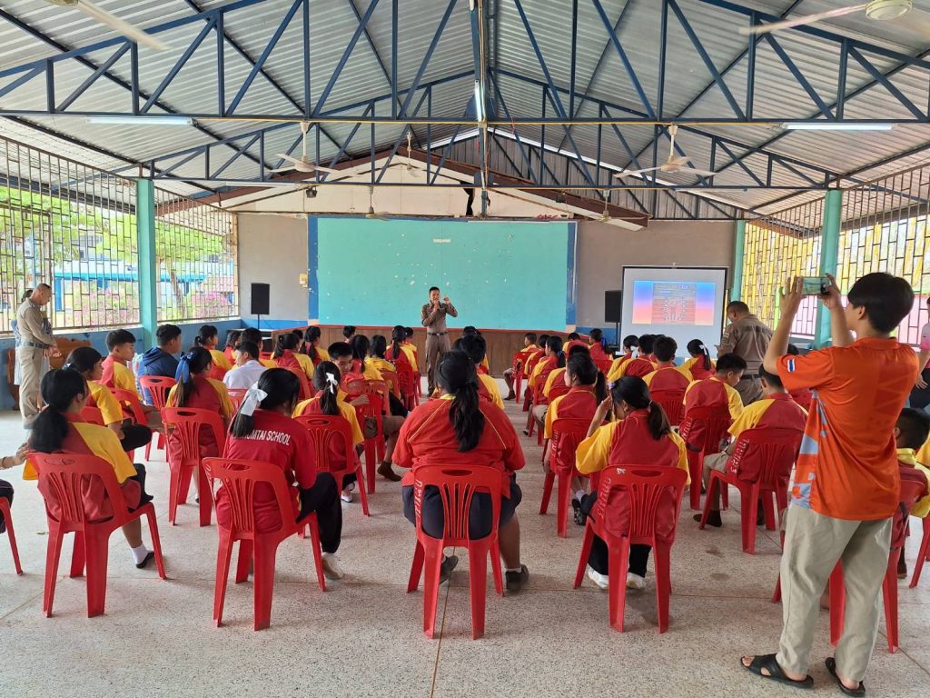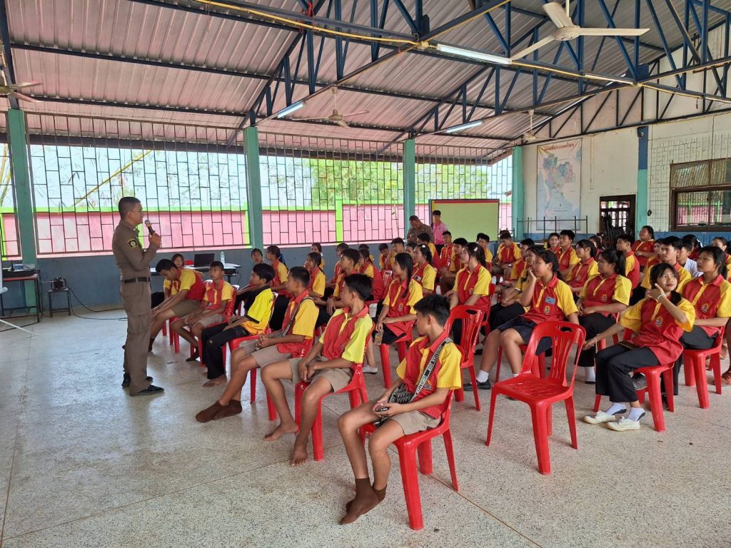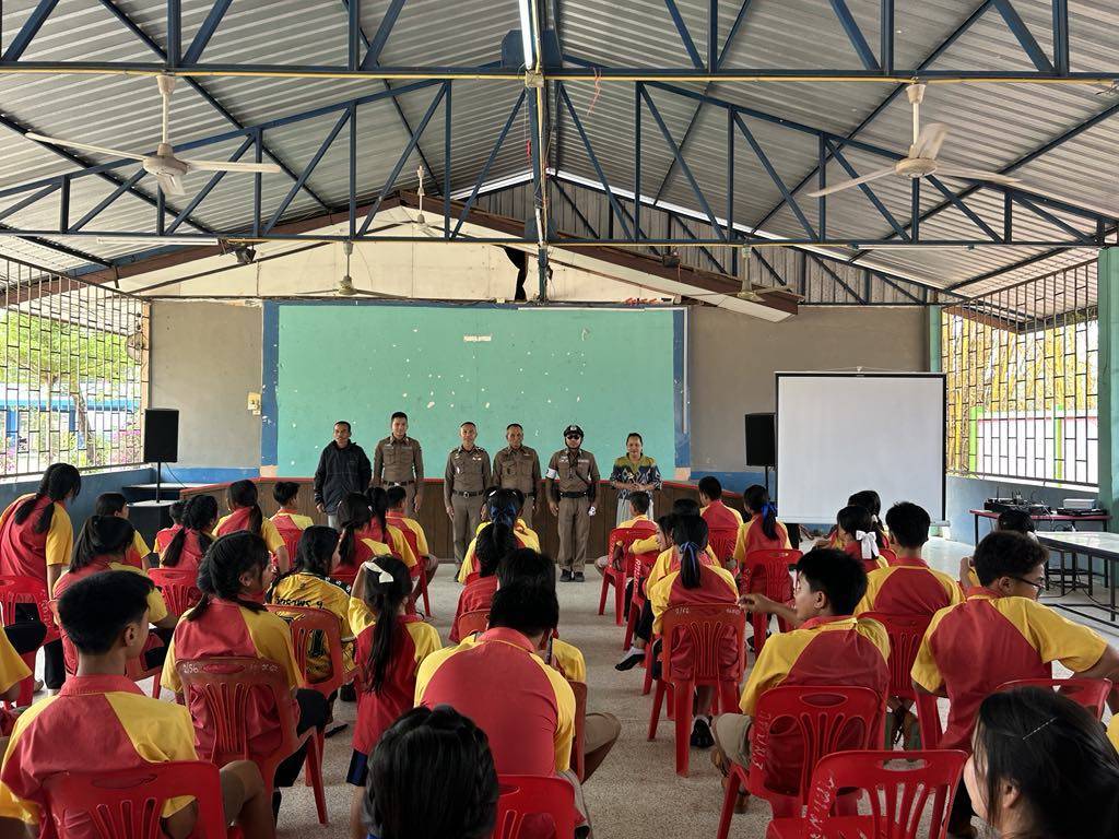 วันนี้ 4 มี.ค.2568 เวลา 10.30 น. นำโดย ร.ต.อ.ทวี สถิละวรรณ รอง สวป.สภ.ม่วงเฒ่า พร้อมด้วยข้าราชการตำรวจชุดจิตอาสาชุมชนสัมพันธ์ สภ.ม่วงเฒ่า ร่วมกับครูโรงเรียนบ้านนาชุมใต้ จัดอบรมปลูกฝัง จริยธรรม คุณธรรมให้ความรู้เรื่องการป้องกันตนเองจากพิษภัยของยาเสพติด น้ำกระท่อม บุหรี่ไฟฟ้า และการขับรถให้ปลอดภัย ให้กับเด็กนักเรียนชั้นมัธยมศึกษาปีที่ 1-3 โรงเรียนบ้านนาชุมใต้ ต.หัวนา อ.เขมราฐ จว.อุบลราชธานี