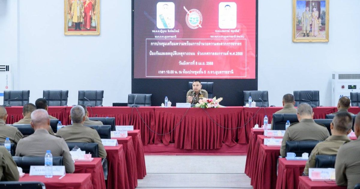 วันที่ 8 เม.ย.2568 เวลา 10.00 น. พ.ต.อ.ธนะพงษ์ ทองคำ ผกก.สภ.ม่วงเฒ่า และ พ.ต.ท.ญาณวุฒิ สายเนตร รอง ผกก.ป.สภ.ม่วงเฒ่า ร่วมประชุมเตรียมความพร้อมการอำนวยความสะดวกการจราจร ป้องกันและลดอุบัติเหตุทางถนน ช่วงเทศกาลสงกรานต์ พ.ศ.2568 ณ ห้องประชุมชั้น 5 ภ.จว.อุบลราชธานี โ