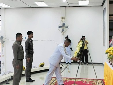 วันที่ 13 ต.ค. 2567 เวลา 06.30 – 09.00 น. พ.ต.อ.ธนชัย แก้วเสนา ผกก.(สอบสวน)ฯ รรท.ผกก.สภ.ม่วงเฒ่า พร้อม ข้าราชการตำรวจ สภ.ม่วงเฒ่า ร่วมกิจกรรมทำบุญตักบาตร และพิธีวางพวงมาลา พระบาทสมเด็จพระบรมชนกาธิเบศร มหาภูมิพลอดุลยเดชมหาราช บรมนาถบพิตร เนื่องในโอกาสวันนวมินทรมหาราช ณ หอประชุมอำเภอเขมราฐ อ.เขมราฐ จ.อุบลราชธานี