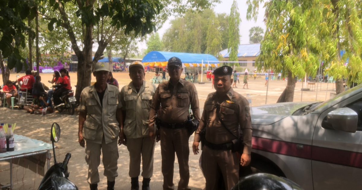 ร.ต.อ.ทวี พันน้อย รอง สว.(ป.)ฯ ร้อยเวร 2-0 พร้อม ด้วย ด.ต.นิรันดร มูลศรี ผบ.หมู่(คผศ.)ฯสายตรวจรถยนต์ และจราจร ออกว.4 รักษาความสงบเรียบร้อยงานแข่งขันกีฬาเยาวชน อบต.เจียด ต.เจียด อ.เขมราฐ จ.อุบลราชธานี