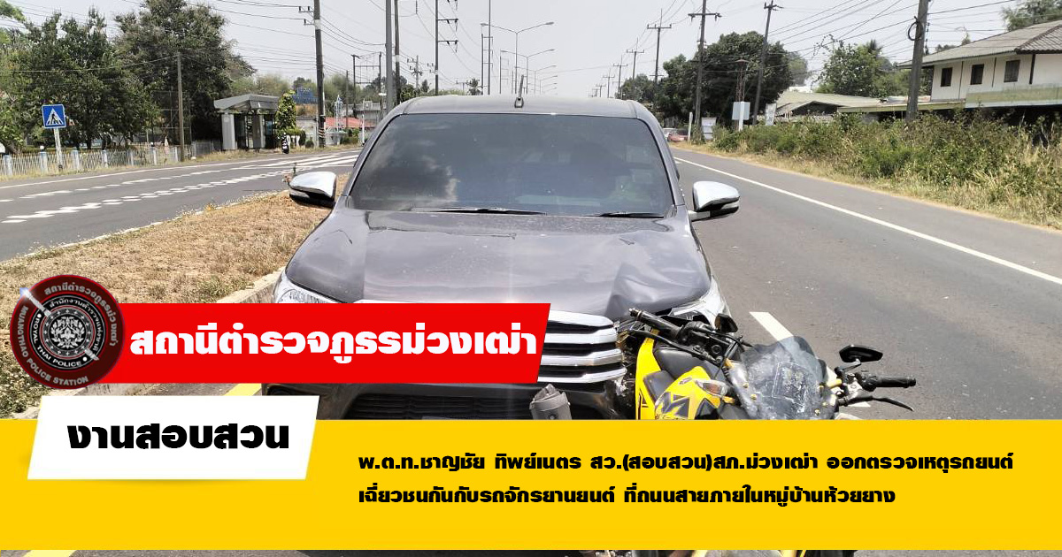 พ.ต.ท.ชาญชัย ทิพย์เนตร สว.(สอบสวน)สภ.ม่วงเฒ่า ออกตรวจเหตุรถยนต์เฉี่ยวชนกันกับรถจักรยานยนต์ ที่ถนนสายภายในหมู่บ้านห้วยยาง