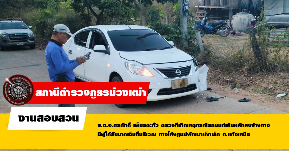 ร.ต.อ.ศรศักดิ์ เพ็ชรตะกั่ว รองสว.(สอบสวน) สภ.ม่วงเฒ่า ได้รับแจ้งจากศูนย์วิทยุว่ามีอุบัติเหตุ รถยนต์เ