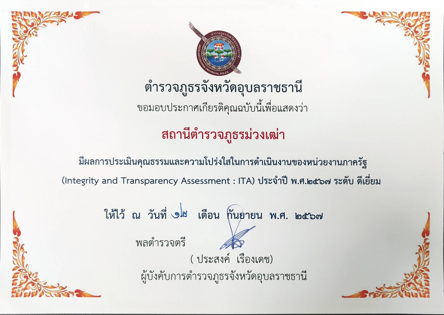 สถานีตำรวจภูธรม่วงเฒ่า ตำบลหัวนา อำเภอเขมราฐ จังหวัดอุบลราชธานี