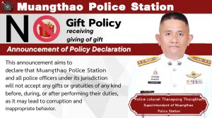 ประกาศสถานีตำรวจภูธรม่วงเฒ่าภาษาไทย“No Gift Policy 2568”