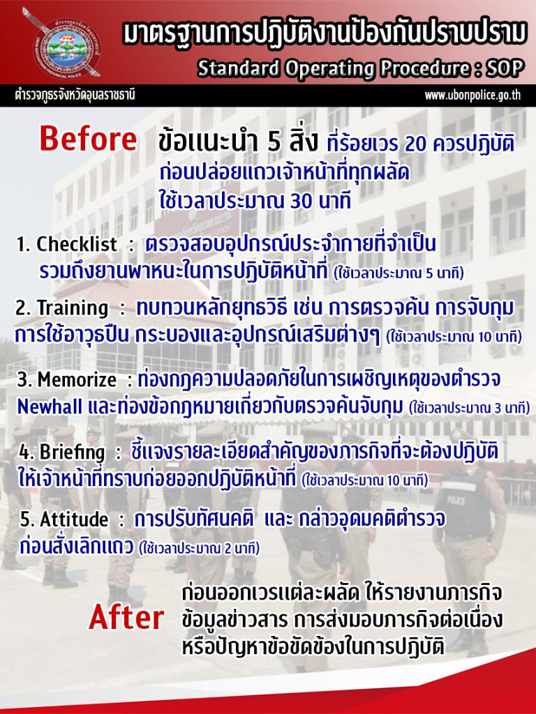 - มาตรฐานการปฏิบัติงาน (Standard Operating Procedure: SOP)ของเจ้าหน้าที่สายตรวจ